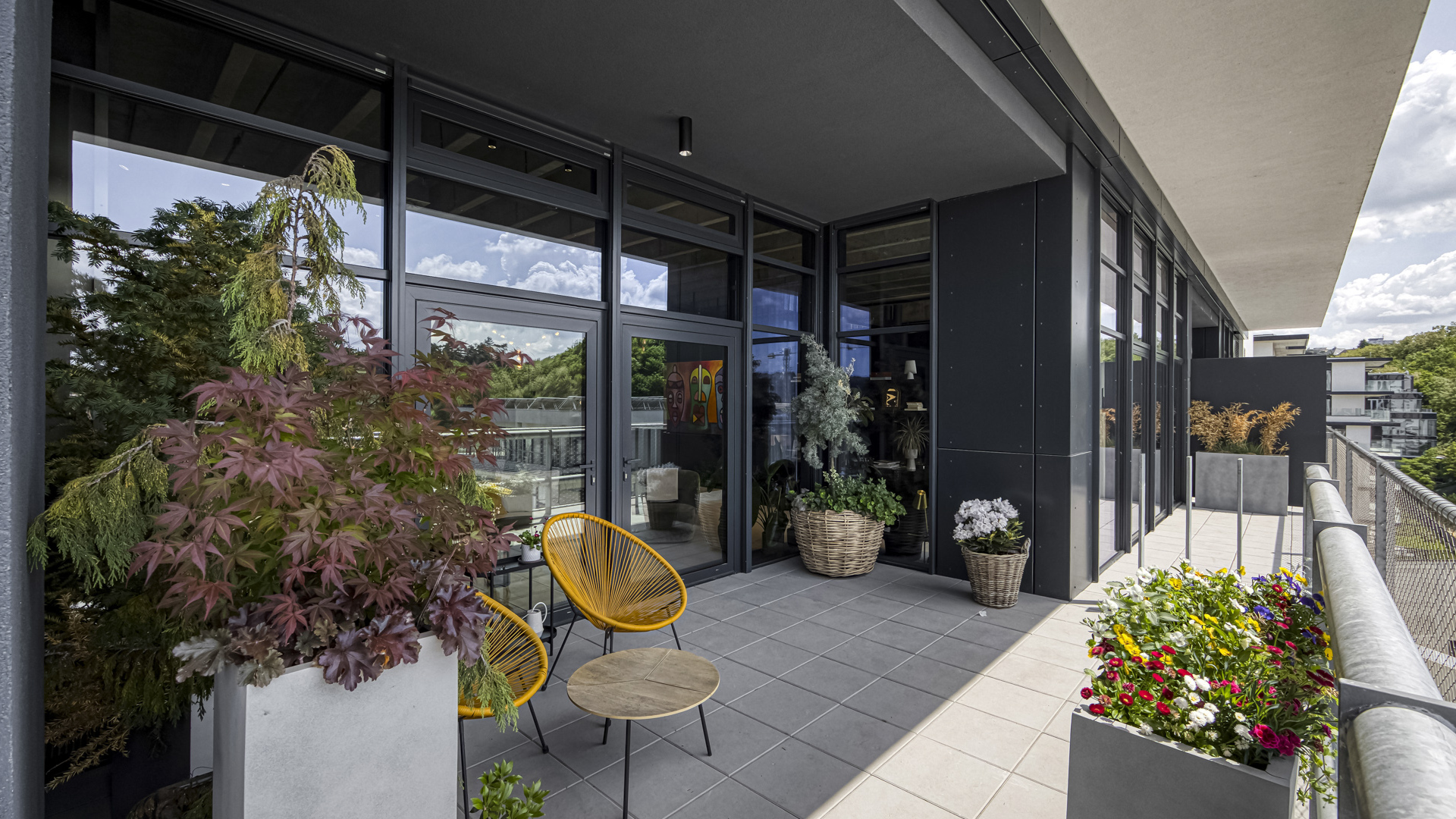 - Unikátní společné prostory – bazén, fitness, kino, grilovací terasa na střeše projektu