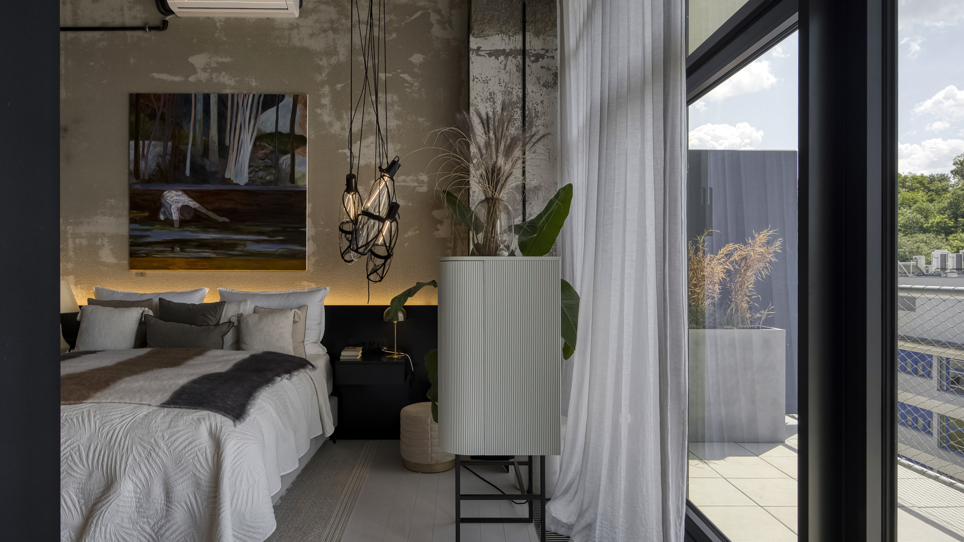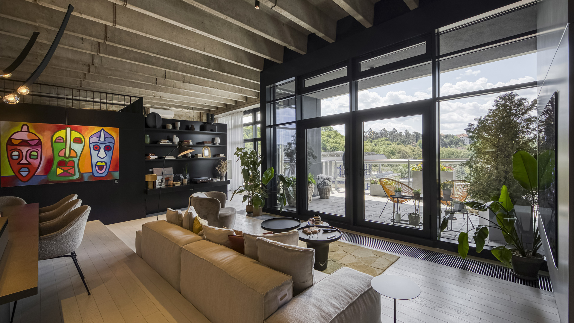 Czech Republic Sotheby’s International Realty nabízí k prodeji výjimečný, kompletně zařízený loft s terasou v jedinečném rezidenčním projektu Vanguard Prague. Návrh interiéru pochází z pera známé designérky Ivanky Kowalski a nese její charakteristický a rozpoznatelný rukopis. Původní stavební prvky jako jsou přiznané betonové stěny nebo žebra na stropech, stejně jako nové instalace v podobě velkoformátových oken zabírajících celou jednu stěnu či nezakryté instalace světel nebo vzduchotechniky jsou zjemněny elegantními prvky v podobě velkoformátové dlažby v koupelně nebo pohodlným nábytkem. Ve výsledném dojmu se tak nenásilně spojuje moderní design s domáckostí a příjemnou atmosférou.