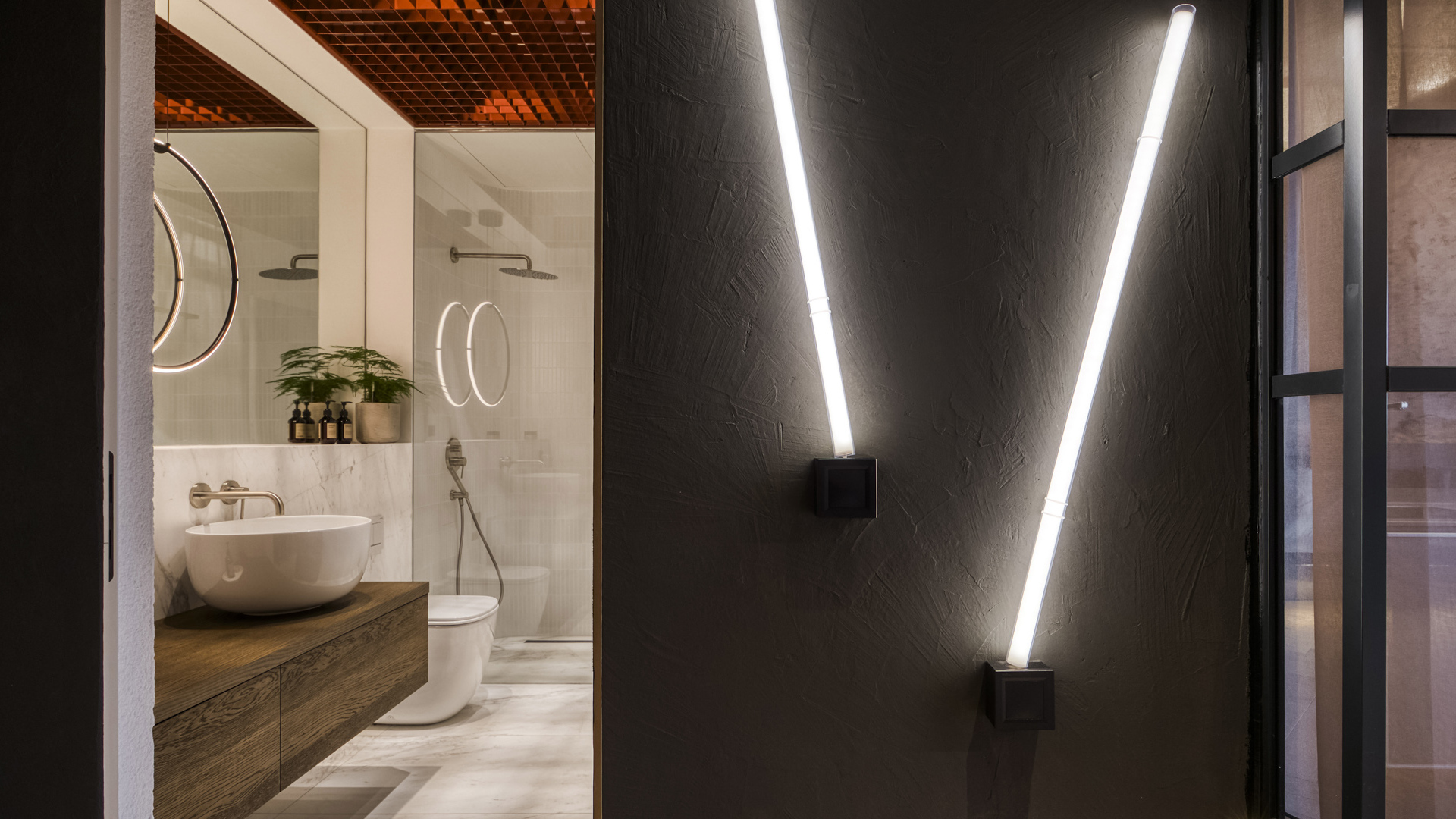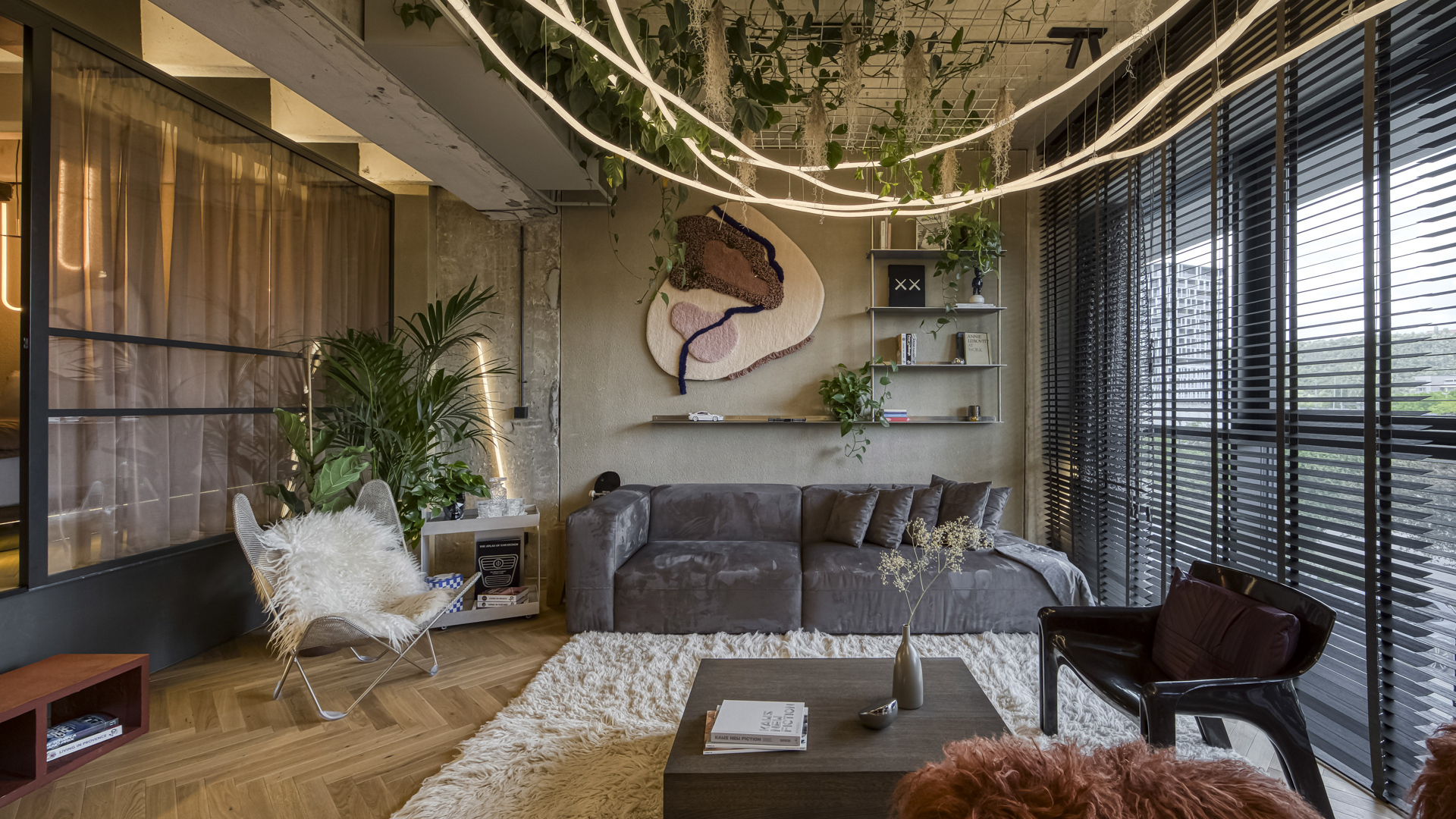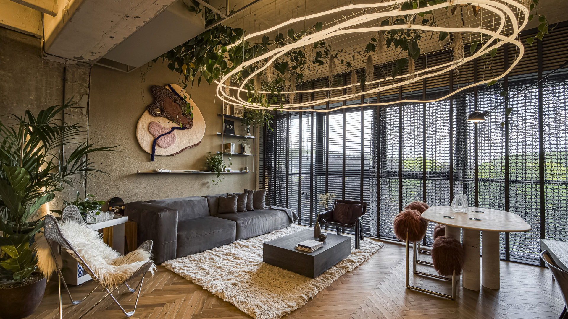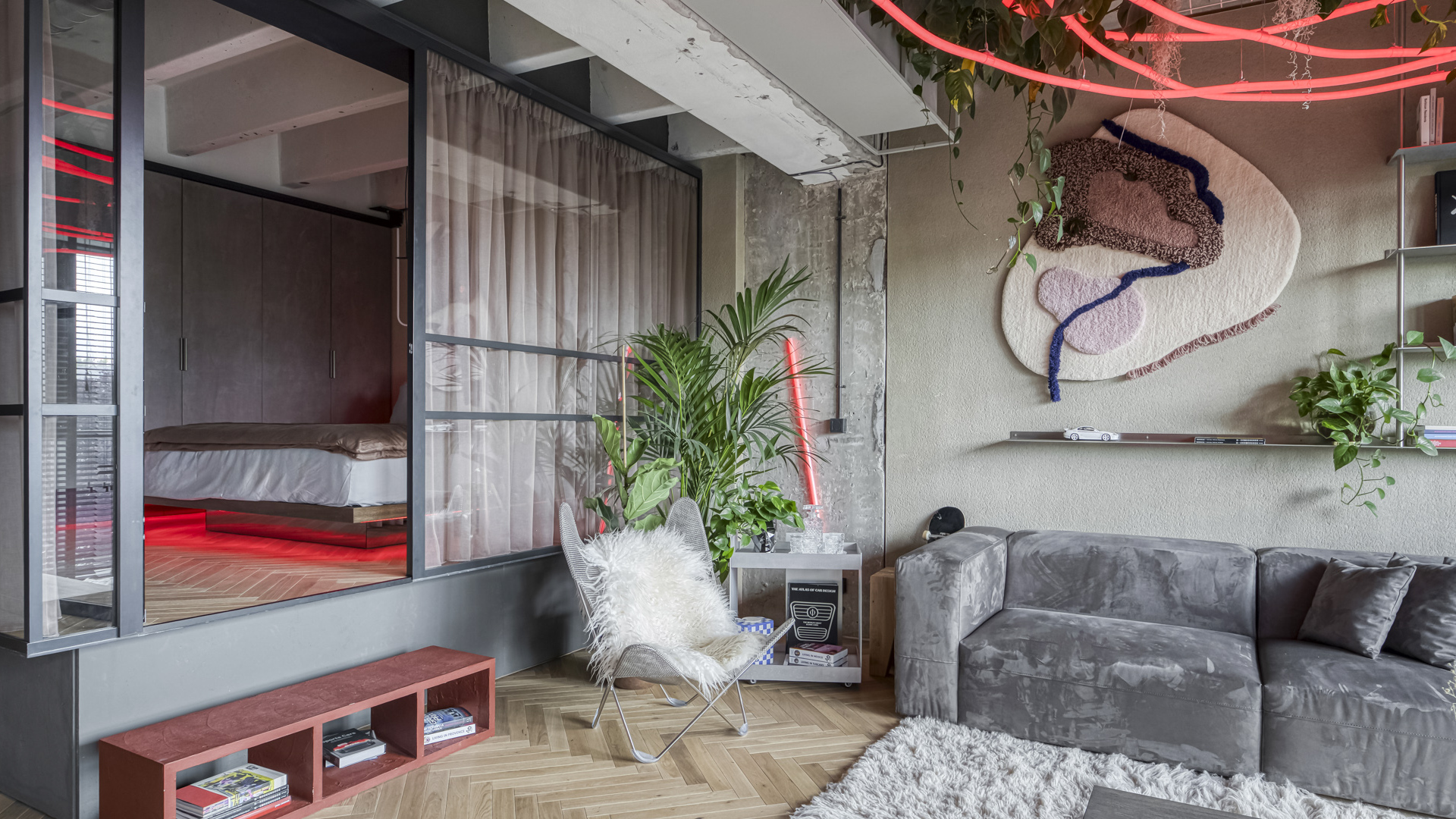 Dalším výrazným rysem loftu je variabilita při vytváření atmosféry. Sofistikované ambientní osvětlení umožňuje měnit charakter prostoru podle nálady či příležitosti. Útulný byt s osvětlením v hřejivých a teplých barvách se tak může v jednom okamžiku změnit v moderní a stylový interiér s futuristickým nádechem – rozdíl, který je patrný i ve dne, ale nejvíce vynikne v nočních hodinách. Celek doplňuje originální stropní konstrukce určená k pokrytí popínavou zelení, která přináší do interiéru svěží přírodní prvek a vytváří působivý kontrast k industriálnímu charakteru loftu. Byt se prodává kompletně vybavený.