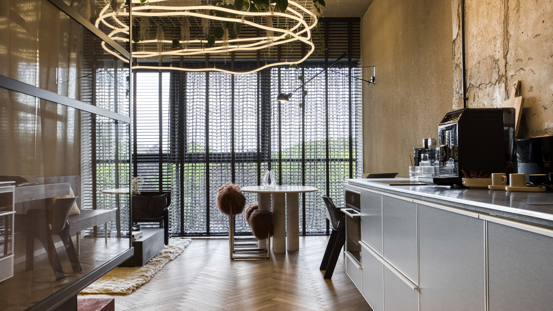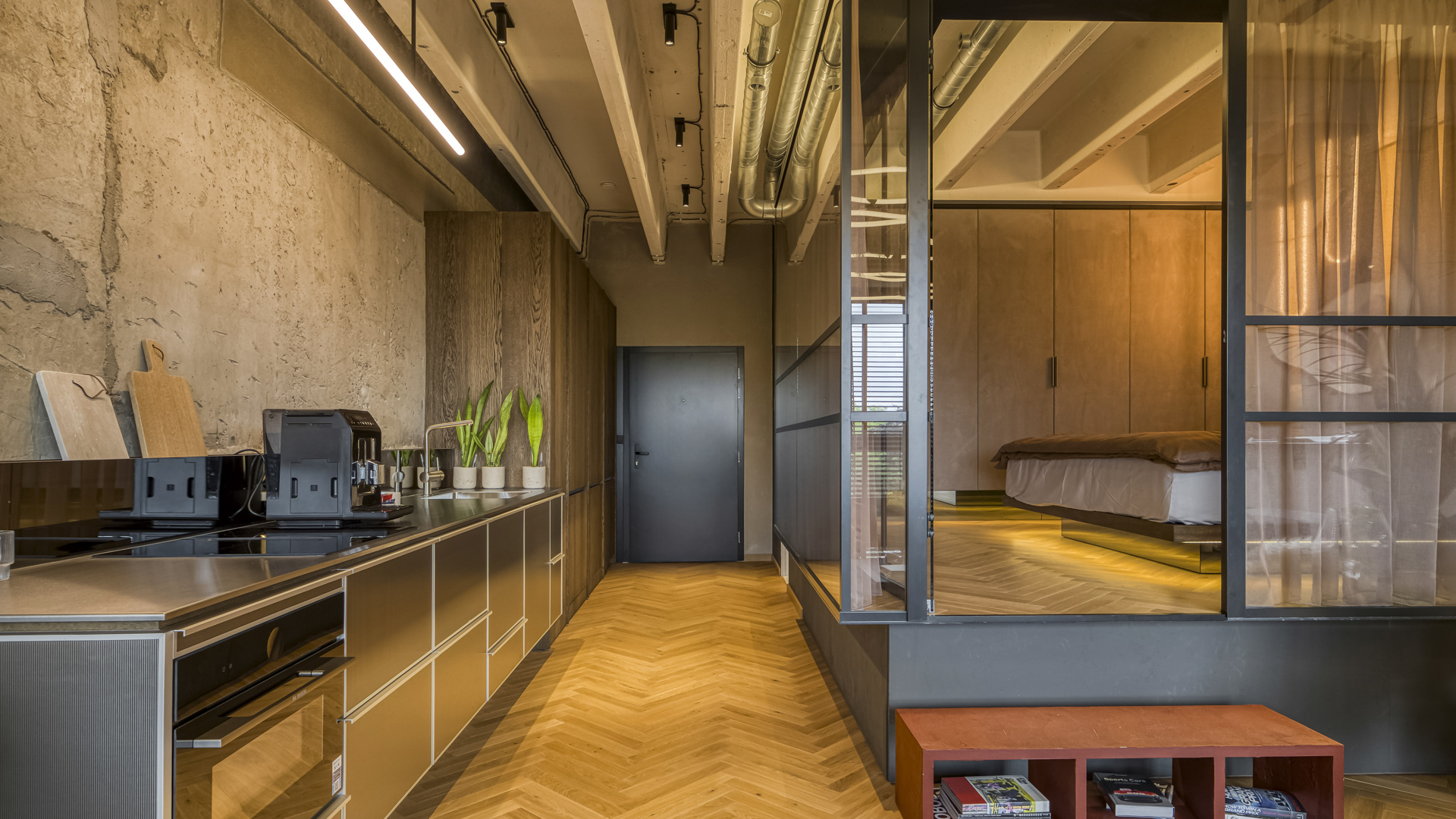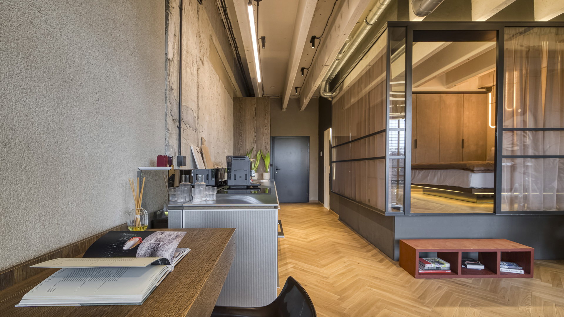 Czech Republic Sotheby’s International Realty nabízí netradičně řešený loft v rezidenčním projektu Vanguard Prague. Cílem interiérového návrhu od architekty Michaely Záhorovské bylo kompaktní a praktické řešení celé dispozice a maximální využití prostoru. Už v zádveří se nachází vstup do koupelny se sprchovým koutem a toaletou, na něj navazuje minimalistická kuchyňská linka s veškerými spotřebiči a dostatkem místa pro vaření. Obytný prostor doplňuje pracovní kout, pohodlné posezení i jídelní stůl. Výjimečným prvkem je ložnice se šatnou a úložnými prostory umístěnými v prosklené ocelové kostce, jejíž industriální design podtrhuje charakter celého projektu. Prosklené stěny opticky zvětšují a prosvětlují loft, zatímco závěsy umožňují během okamžiku vytvořit dokonalé soukromí.