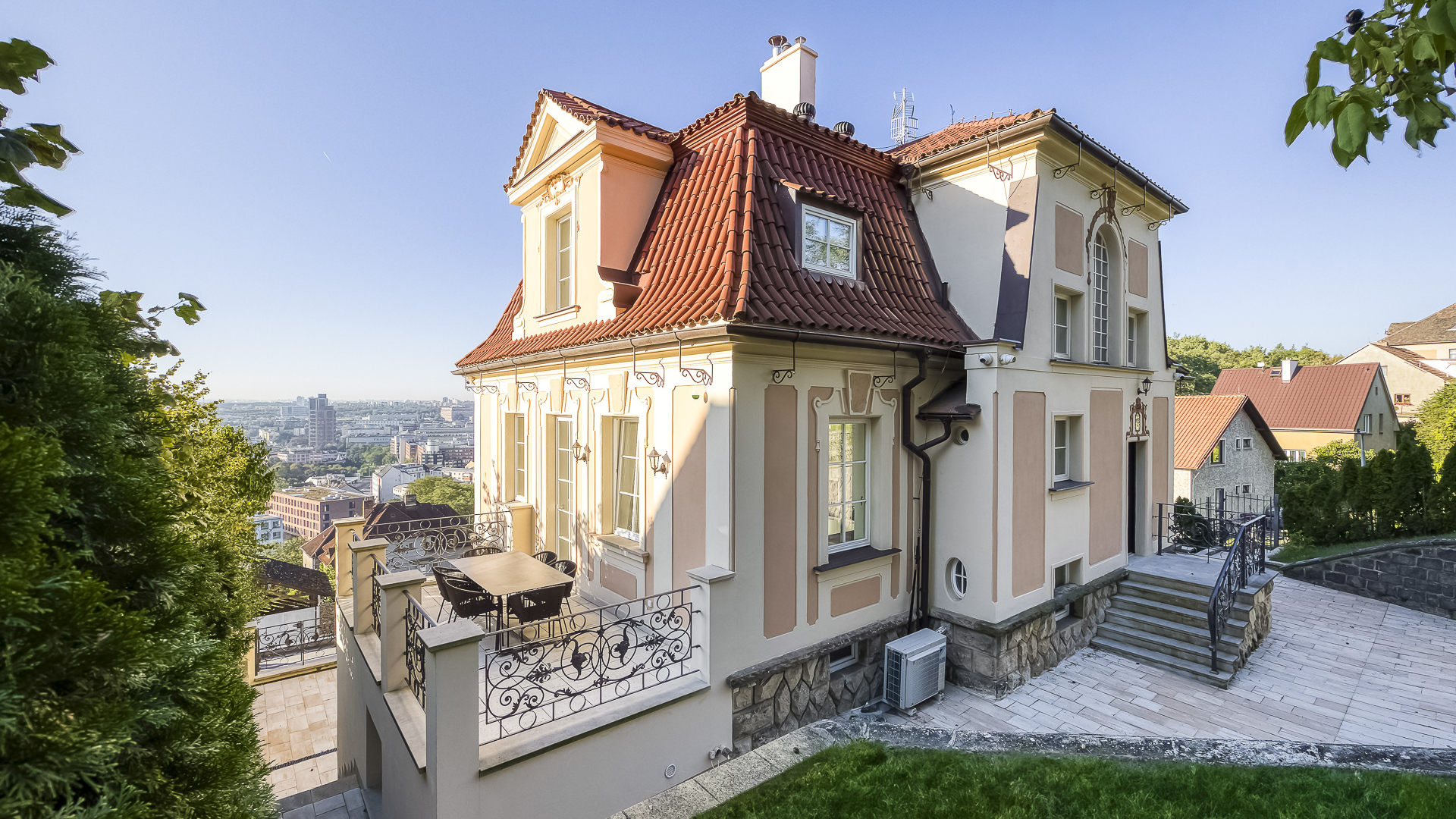 Díky své architektonické hodnotě, precizní rekonstrukci a atraktivní poloze tato rezidence představuje unikátní příležitost pro ty, kteří hledají bydlení s duší, historií a nadčasovou elegancí. Nabízí ideální kombinaci pro reprezentativní rodinné sídlo v širším centru Prahy.