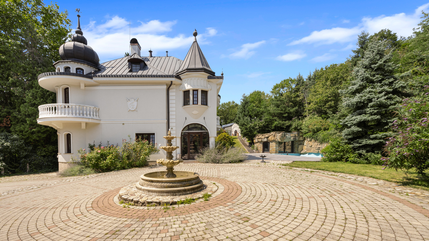 Dominantou nabídky je zámeček zkolaudován po kompletní obnově v roce 2018. Na třech podlažích nabízí užitnou plochu 550 m² a 12 pokojů, z toho je 7 ložnic, každá s vlastní koupelnou a působivými klenbami. Reprezentativní vstupní hala navazuje na jídelnu s výstupem na terasu, plně vybavenou kuchyň se zabudovanými spotřebiči. Siemens a obývací pokoj. Nechybí pracovna s knihovnou, fitness studio v proskleném výklenku, zázemí pro personál, množství šatníků či tzv. tajná místnost. Dispozici doplňuje soukromá oddechová zóna v podkroví, střešní terasa a vinný sklípek.