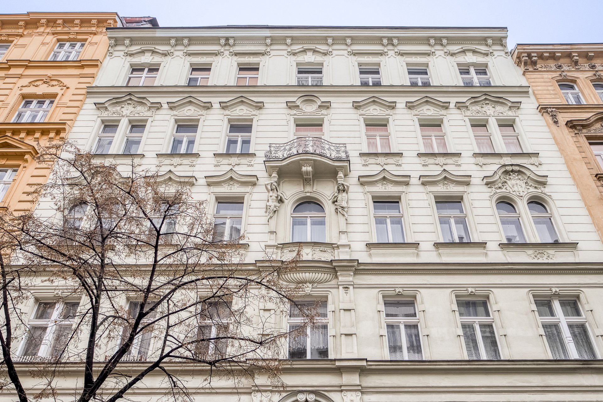 Byt prošel kompletní a nadstandardní rekonstrukcí, která kombinuje historické prvky domu s moderními materiály. Dispozici tvoří vstupní hala, prostorný obývací pokoj s kuchyňským koutem na míru, hlavní ložnice s balkonem, druhá ložnice, koupelna se sprchovým koutem, samostatná toaleta a praktická šatna.