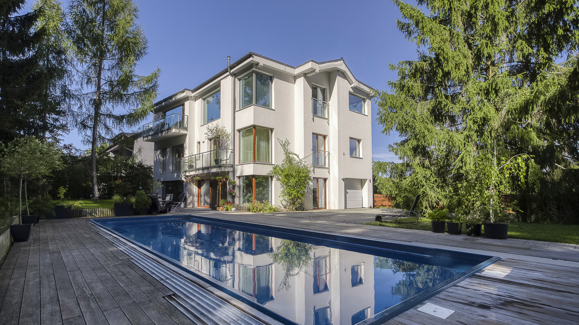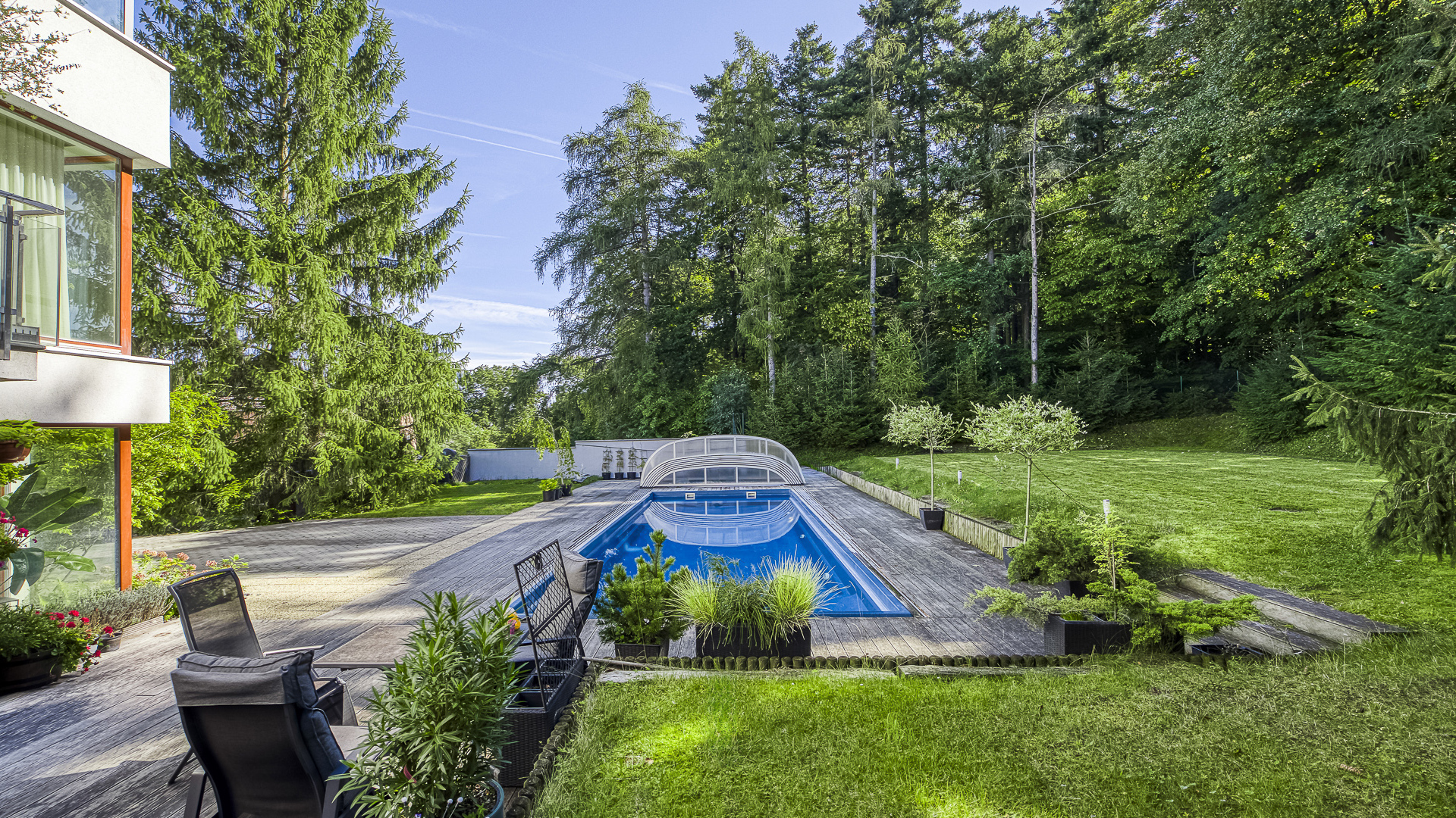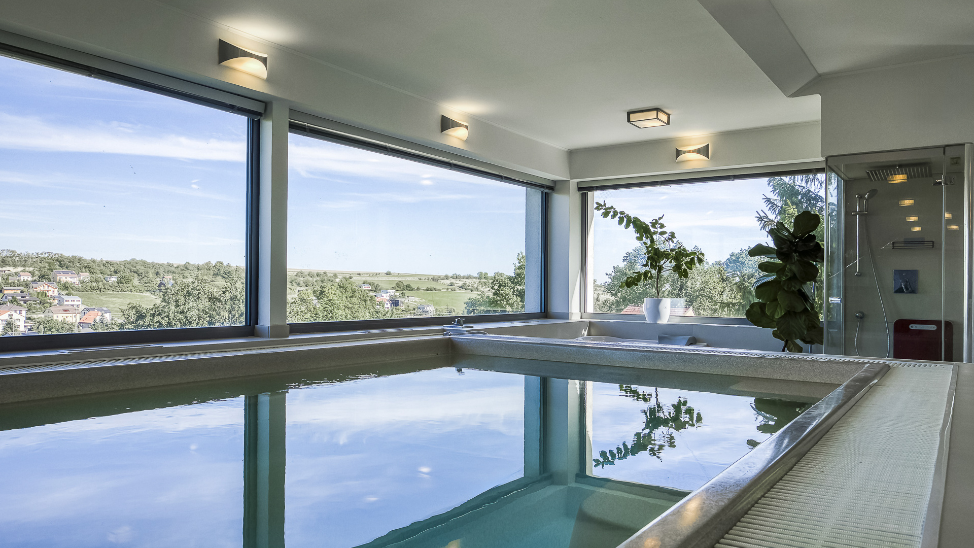 Czech Republic Sotheby’s International Realty offers for sale a modern family home located at the end of a cul-de-sac in Tuchoměřice. Thanks to its position on the very edge of the residential area, the property ensures exceptional privacy. The immediate proximity of nature, with a forest directly adjoining the plot, enhances the pleasant atmosphere of the spacious garden with a terrace and swimming pool. In addition to a maintained lawn, the garden also offers a touch of wilderness: thanks to the nearby forest you can find wild strawberries and mushrooms here, as well as mature trees including apple, plum, and peach. Premium materials were used in the construction of the house, naturally including large-format windows, underfloor heating, gas boilers, a heat pump, and a central vacuum system. A true highlight is the indoor swimming pool with counter-current, unusually located on the upper floor, providing panoramic views directly from the water.