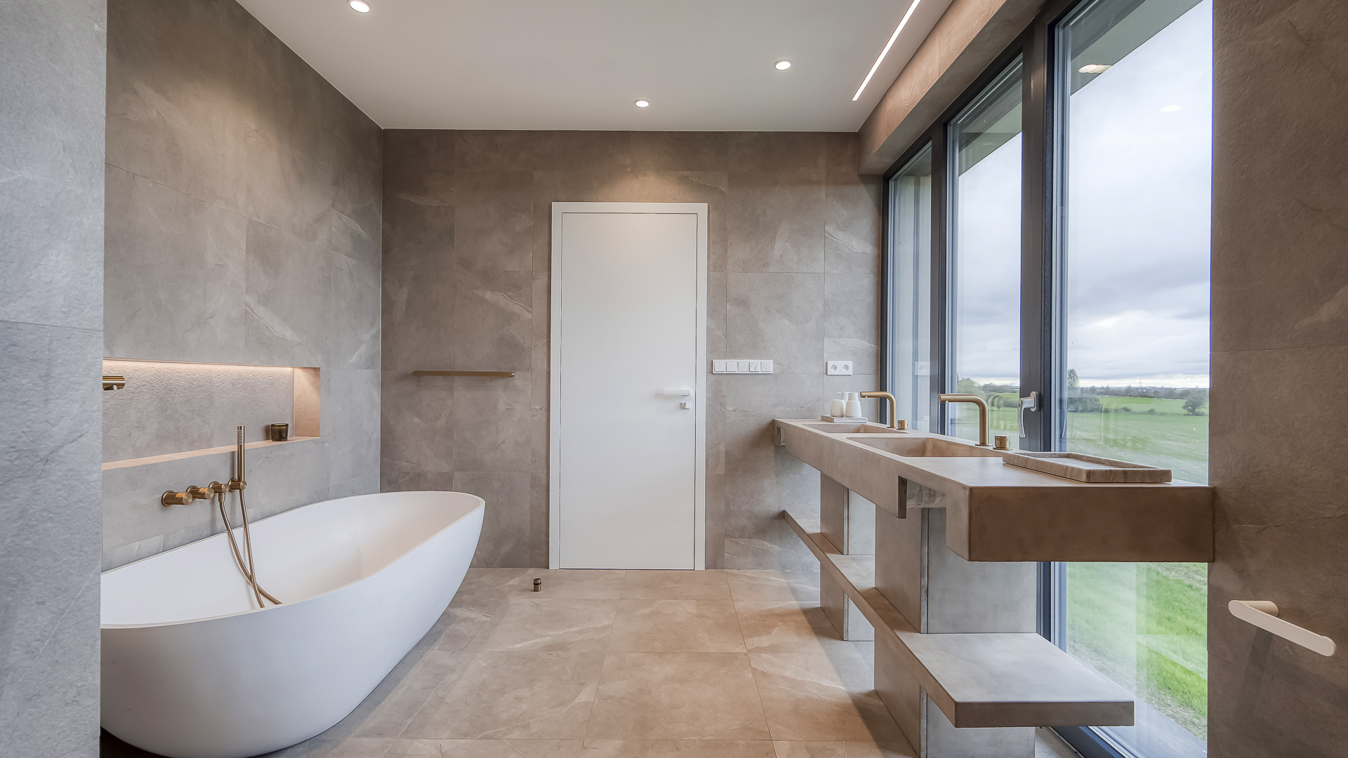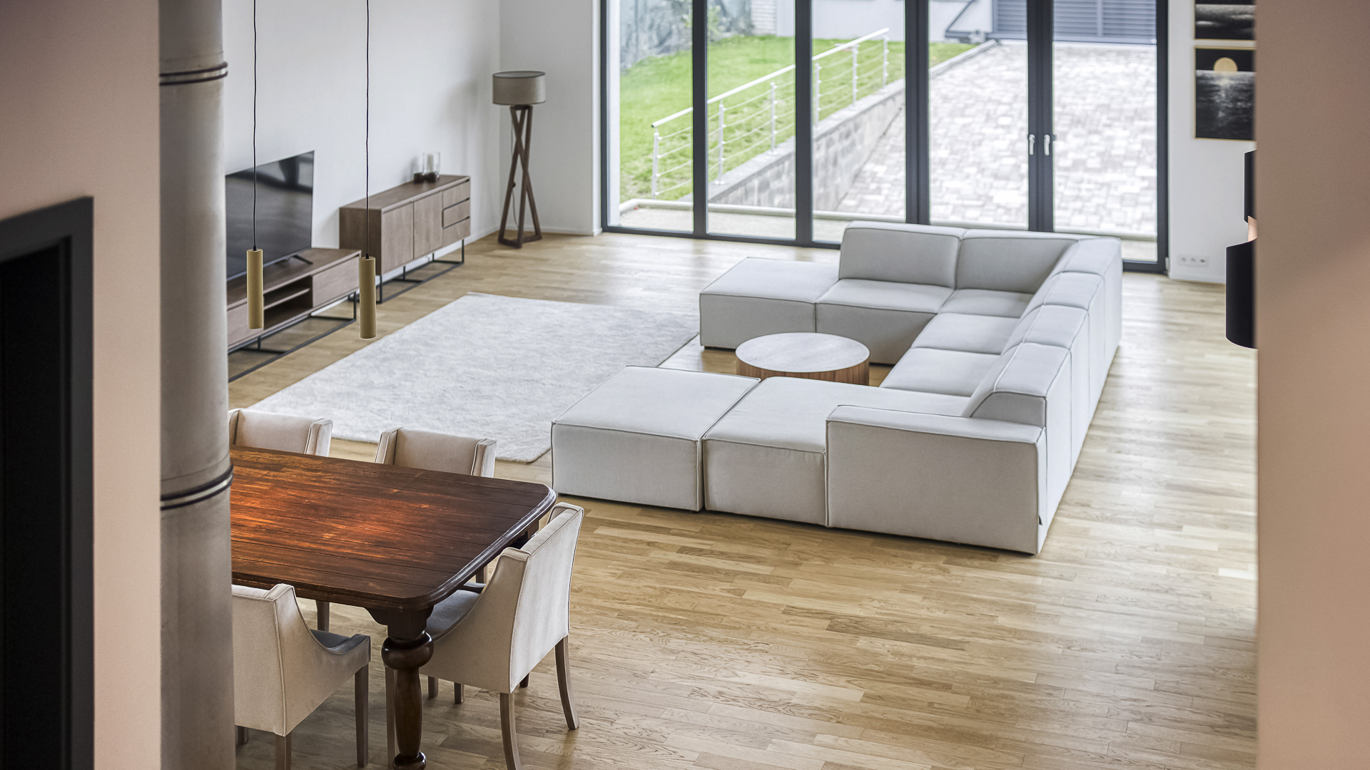 The standard of the villa includes wooden floors, tiles, large-format windows with insulating triple glazing, a heat pump and preparation for air conditioning.