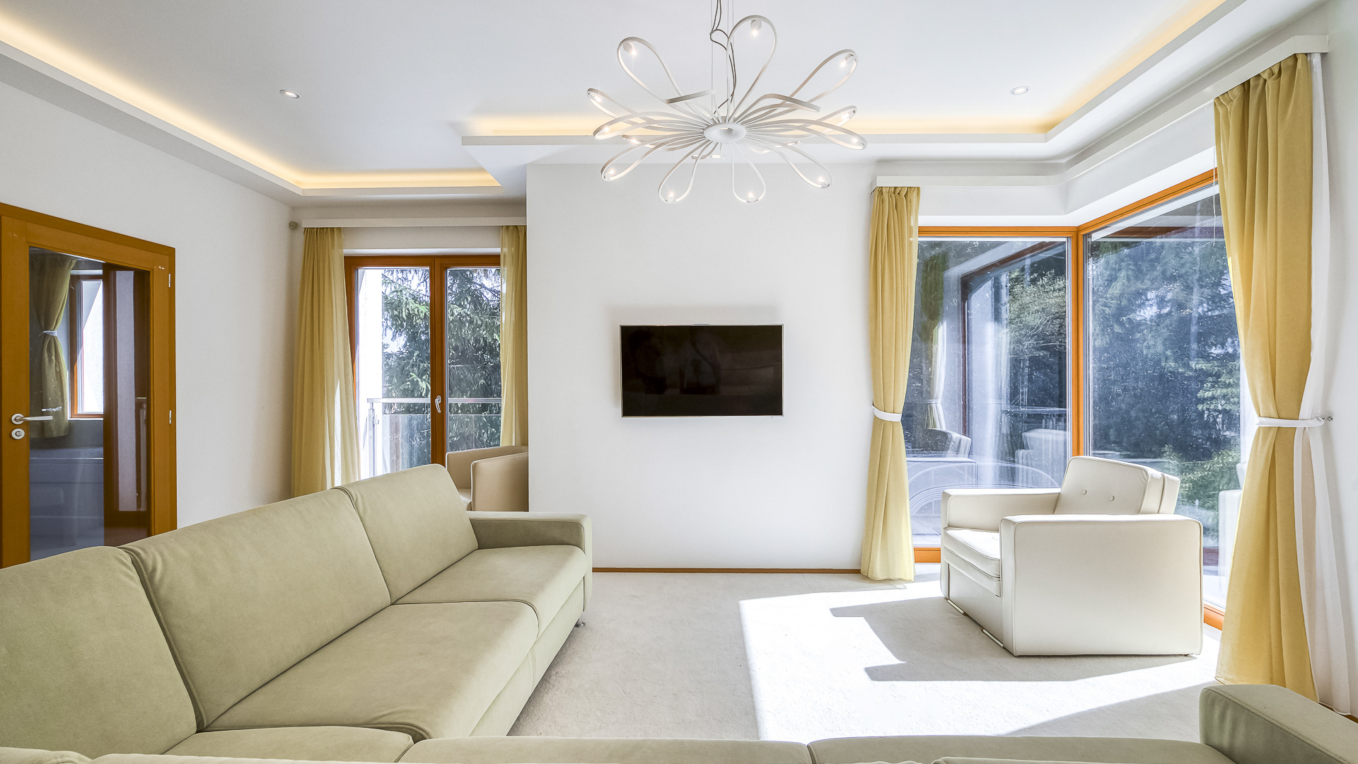 Czech Republic Sotheby’s International Realty offers for rent a modern family home located at the end of a cul-de-sac in Tuchoměřice. Thanks to its position on the very edge of the residential area, the property ensures exceptional privacy. The immediate proximity of nature, with a forest directly adjoining the plot, enhances the pleasant atmosphere of the spacious garden with a terrace and swimming pool. In addition to a maintained lawn, the garden also offers a touch of wilderness: thanks to the nearby forest you can find wild strawberries and mushrooms here, as well as mature trees including apple, plum, and peach. Premium materials were used in the construction of the house, naturally including large-format windows, underfloor heating, gas boilers, a heat pump, and a central vacuum system. A true highlight is the indoor swimming pool with counter-current, unusually located on the upper floor, providing panoramic views directly from the water.