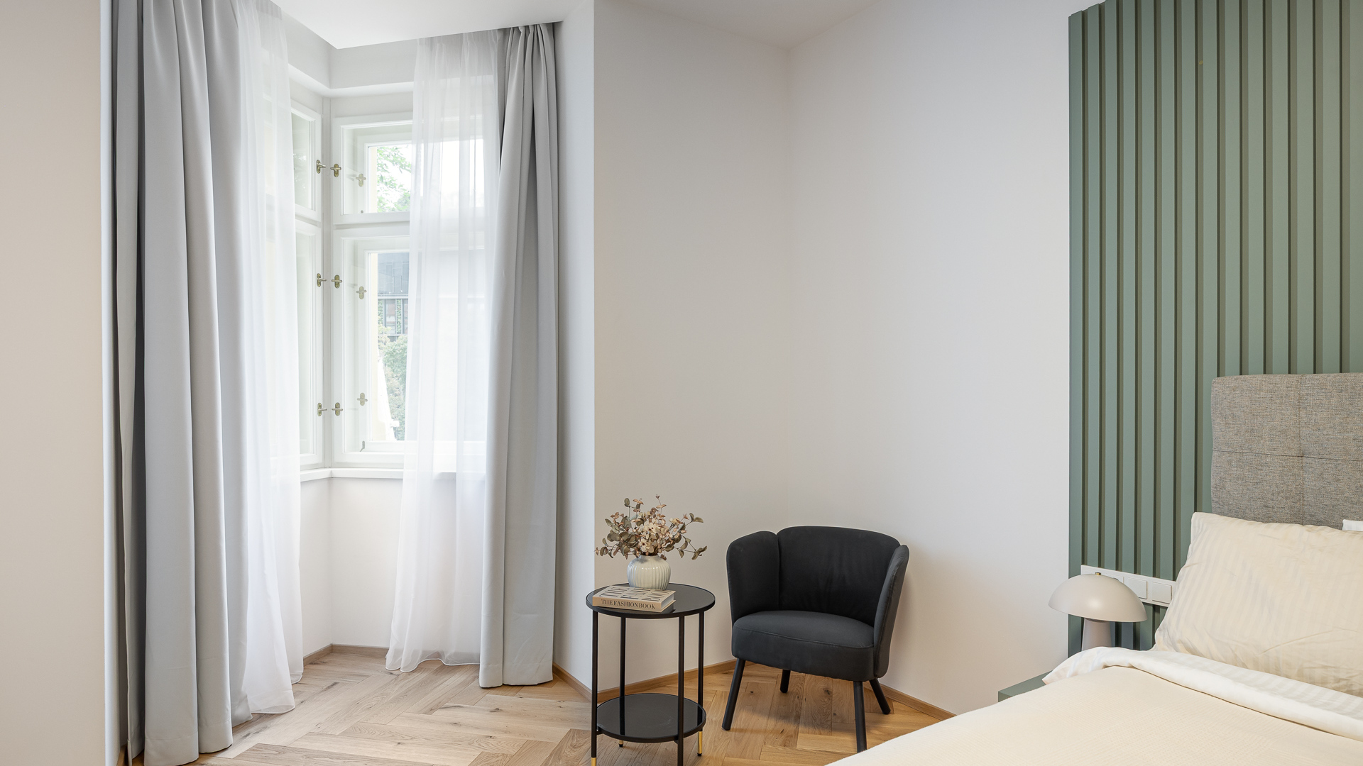 Sotheby’s International Realty Czech Republic presents a modern 1-bedroom apartment for rent with a total floor area of 73,50 sqm, located on the third floor of the newly renovated Sovova Residence in the sought-after district of Karlín.