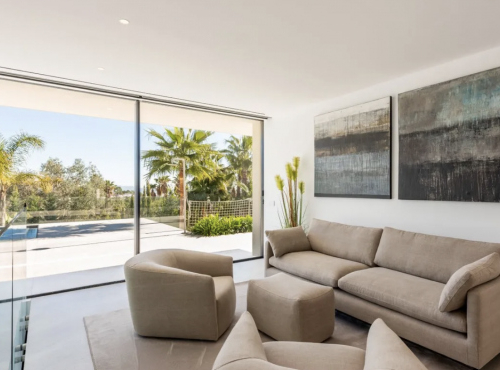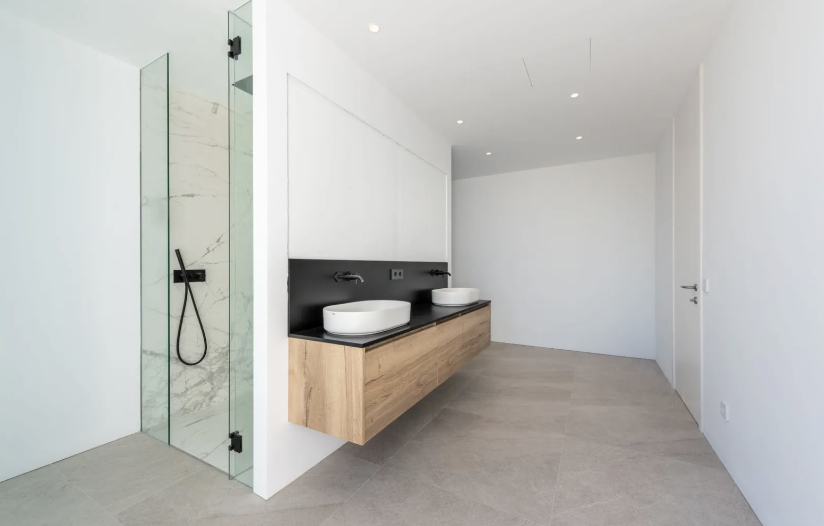 Tato fantastická ultramoderní vila o rozloze 579 m² je rozprostřena do třech podlaží, nabízí vysoce kvalitní vybavení a technologie a je kompletně zařízena. Nachází se v odlehlé oblasti se zahradou o rozloze 202 m² a nabídne pět pokojů a čtyři koupelny. Vile dominuje prostorný obývací pokoj s jídelnou o rozloze více než 100 m² s otevřenou zařízenou a plně vybavenou kuchyní. Dále nadchne střešní terasou s vířivkou s dechberoucími výhledy na moře a záliv Palma. Součástí zahrady je velký bazén se slanou vodou se spa a posilovnou, který je obklopen rozsáhlými terasami.
