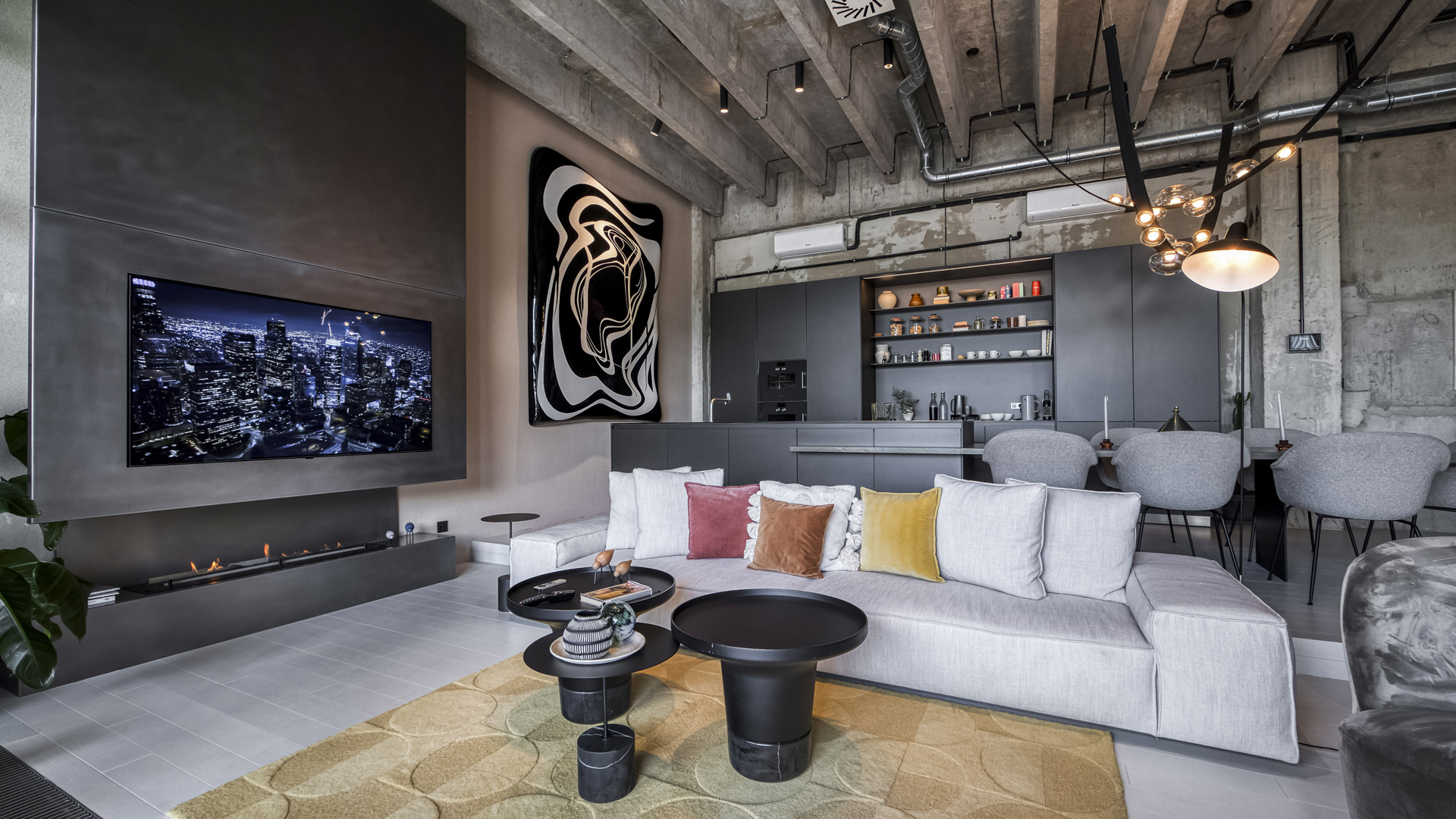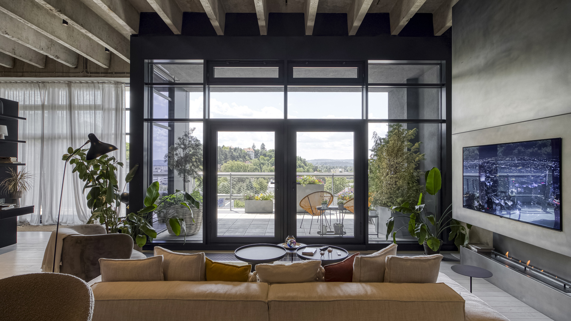 Czech Republic Sotheby’s International Realty nabízí k prodeji výjimečný, kompletně zařízený loft s terasou v jedinečném rezidenčním projektu Vanguard Prague. Návrh interiéru pochází z pera známé designérky Ivanky Kowalski a nese její charakteristický a rozpoznatelný rukopis. Původní stavební prvky jako jsou přiznané betonové stěny nebo žebra na stropech, stejně jako nové instalace v podobě velkoformátových oken zabírajících celou jednu stěnu či nezakryté instalace světel nebo vzduchotechniky jsou zjemněny elegantními prvky v podobě velkoformátové dlažby v koupelně nebo pohodlným nábytkem. Ve výsledném dojmu se tak nenásilně spojuje moderní design s domáckostí a příjemnou atmosférou.