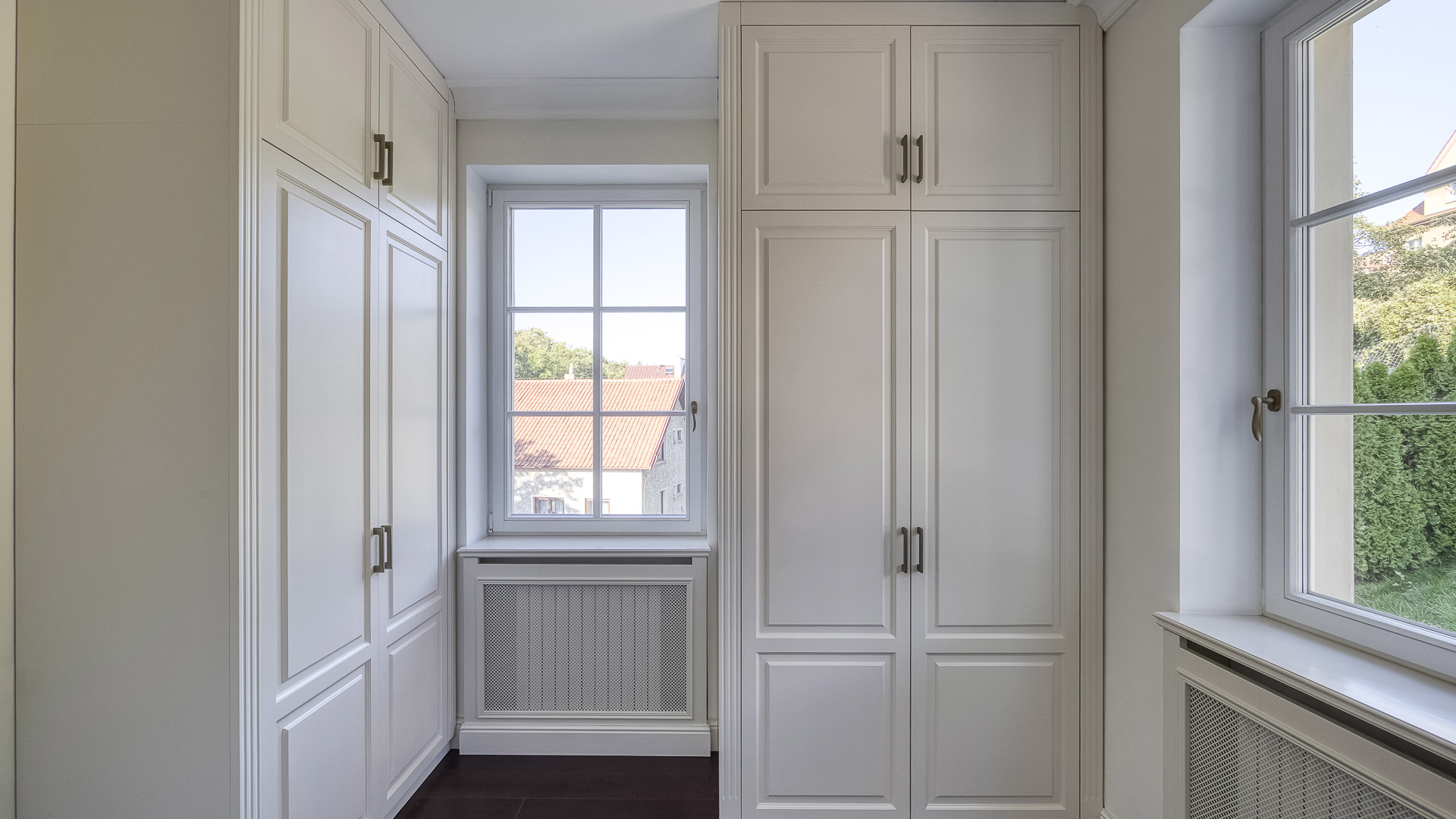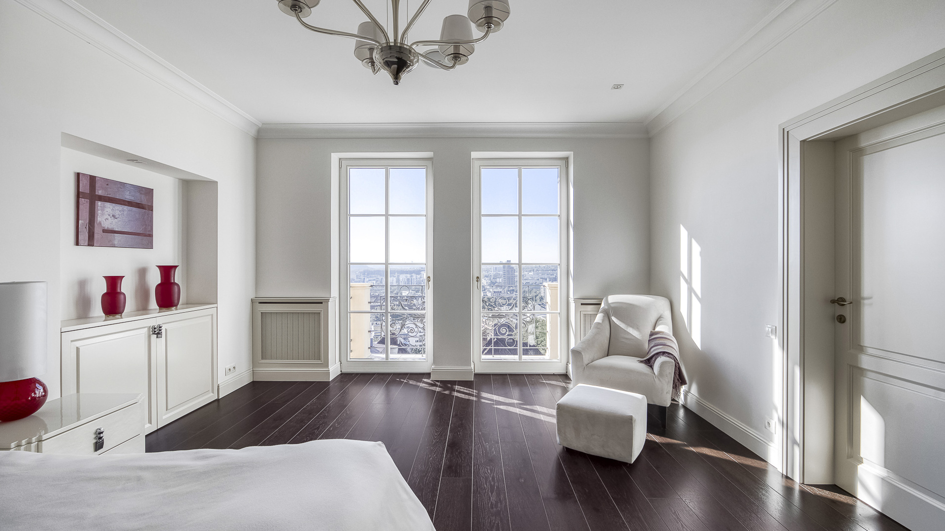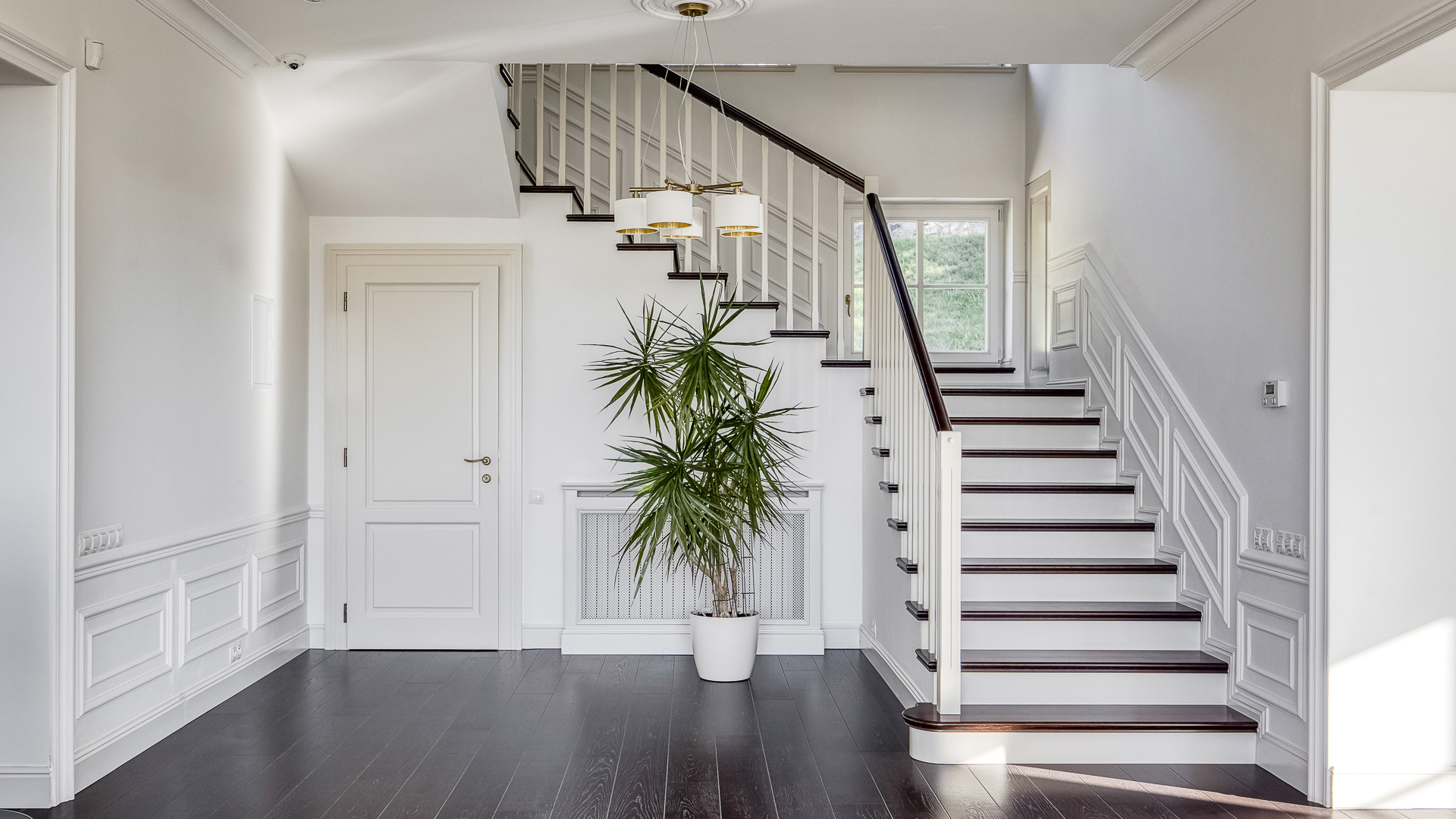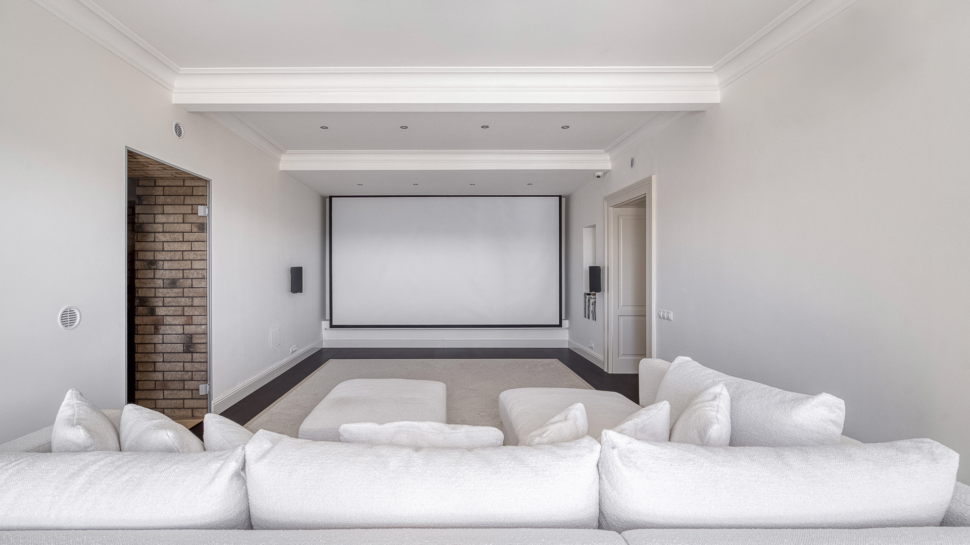 Interiér je zpracován s mimořádnou péčí a důrazem na kvalitu. Podlahy tvoří luxusní dřevěná krytina Kährs Dub Classic Nouveau Black mat, jejíž tmavý matný odstín dodává prostoru eleganci a hloubku. Kuchyň i vestavěný nábytek byly realizovány na míru renomovanou italskou společností Old Line, která se podílela i na vybavení šaten. Koupelny jsou osazeny exkluzivní sanitární technikou Devon & Devon, symbolem italského designu a precizního řemesla. Vila nabízí čtyři koupelny, prostornou terasu a balkon s výhledem do pečlivě udržované zahrady.
