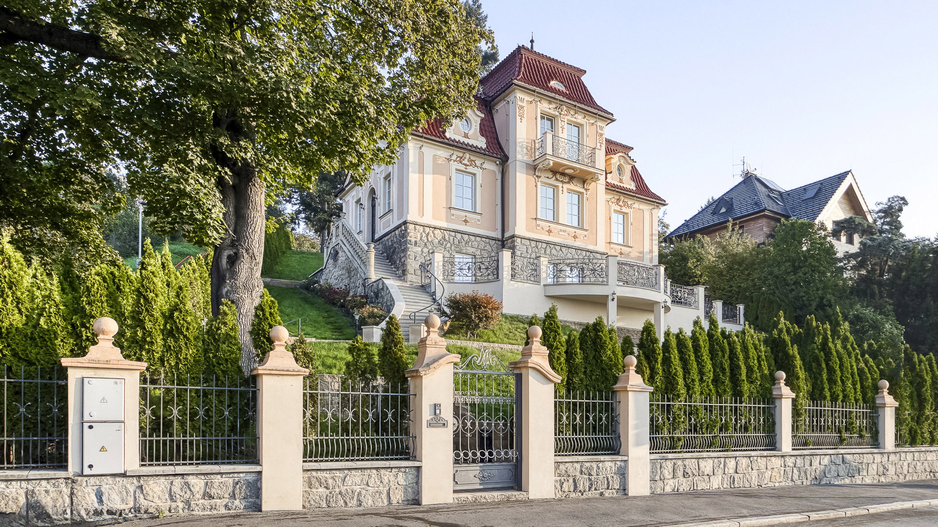 Vila prošla v roce 2019 kompletní rekonstrukcí, která respektovala původní charakter stavby a zároveň ji přizpůsobila nejvyšším standardům současného bydlení. K domu náleží pečlivě upravený pozemek o rozloze 1 347 m² se dvěma samostatnými vstupy, poskytující naprosté soukromí a reprezentativní prostředí.
