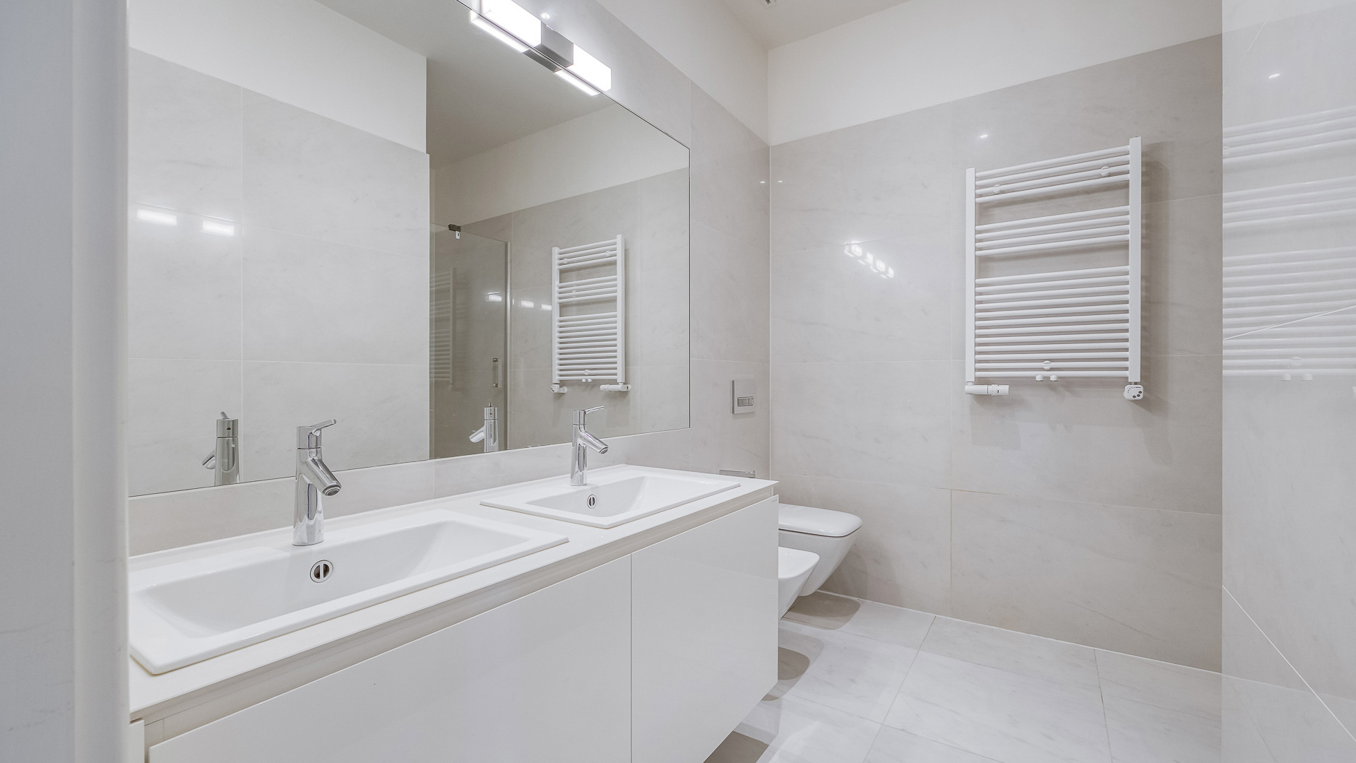 The apartment also features oak floors, large-format tiles, an intelligent home management and security system, ceiling cooling and heating, underfloor heating, a gas boiler and electrically operated roller shutters.