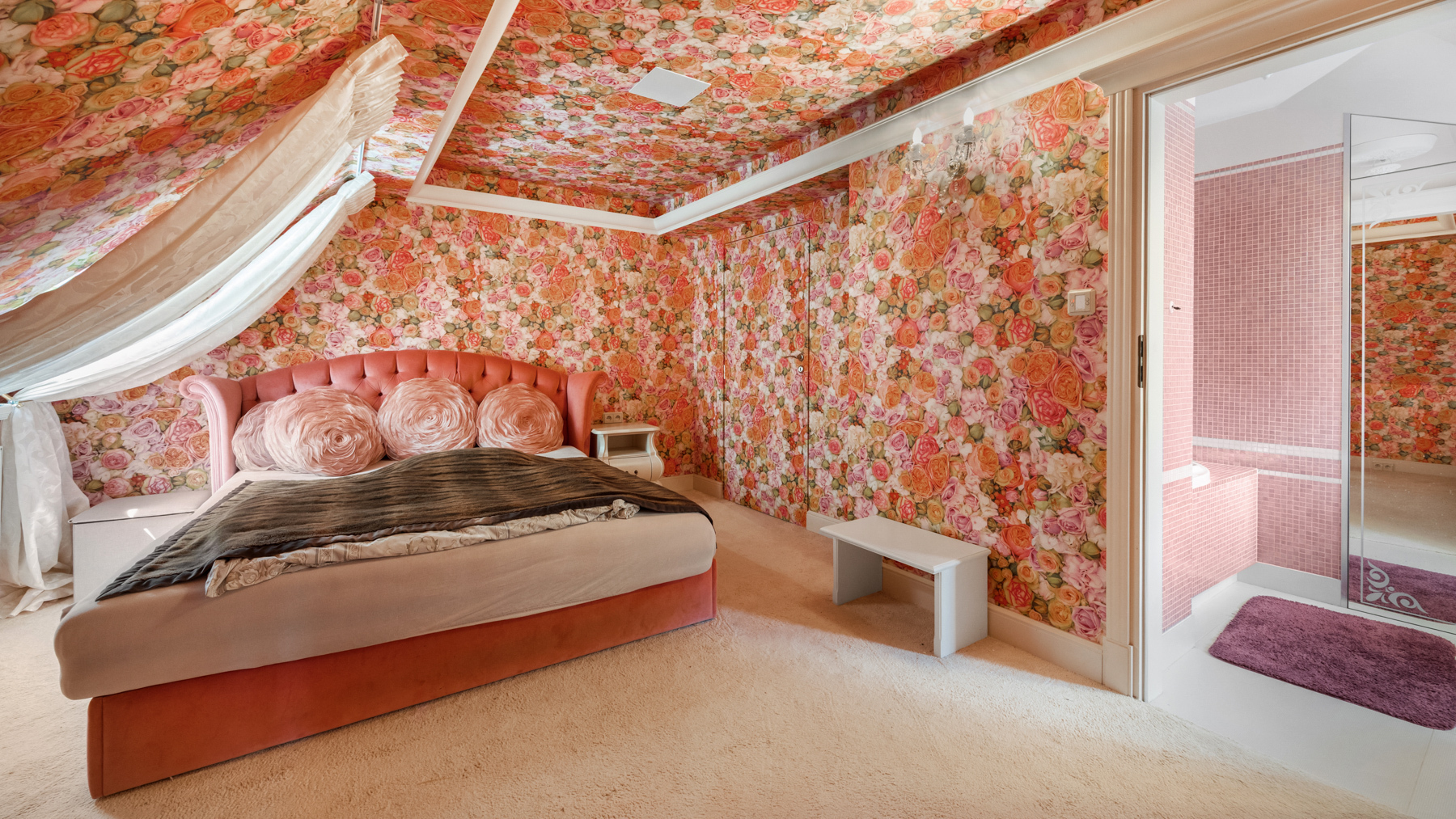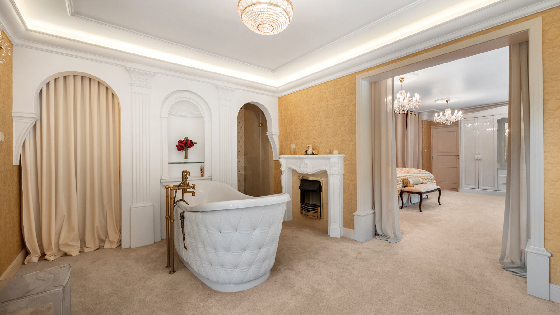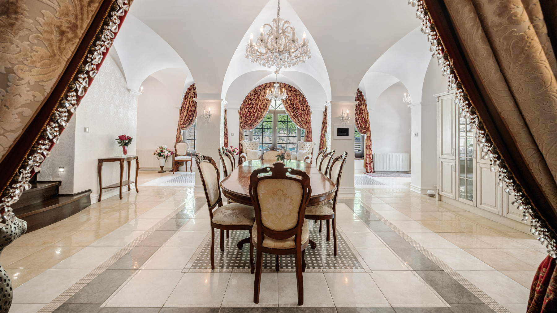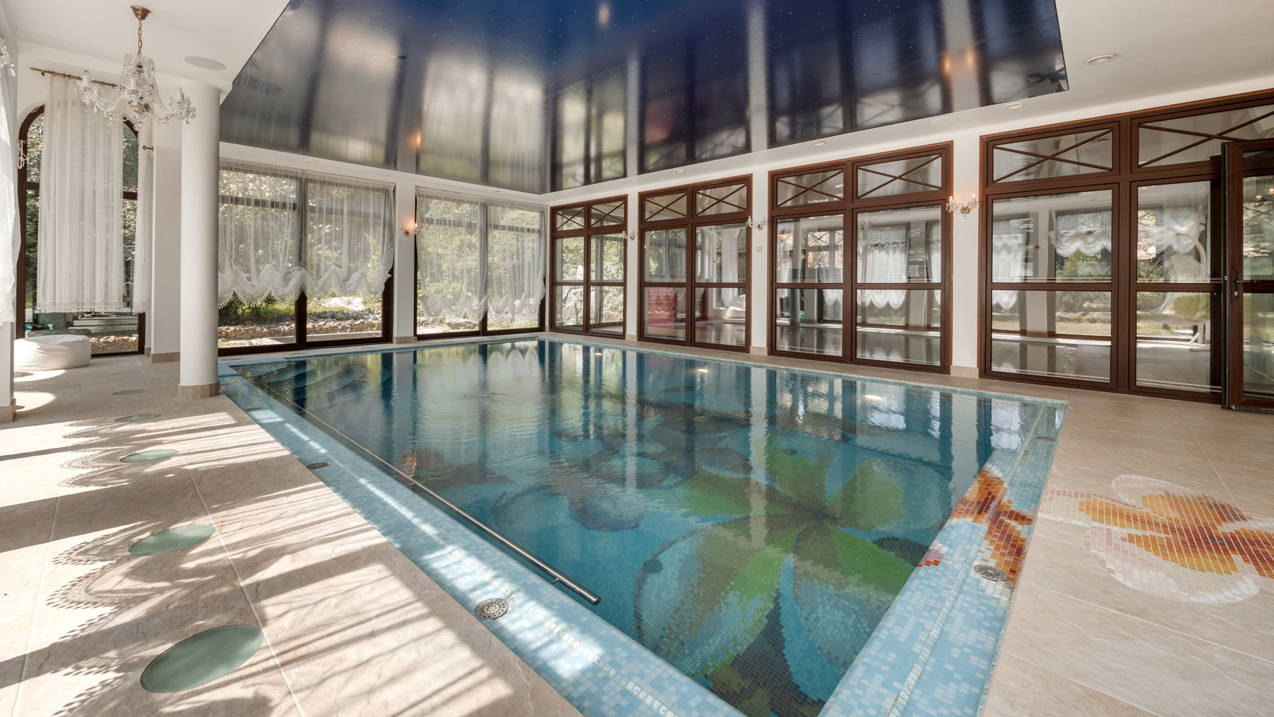 The interior, highlighted by the renowned Italian brand Versace Home Design, combines elements of historical architecture (ceramic tiles, stucco ceilings, wallpapers, fireplaces and crystal chandeliers) with modern technologies (air conditioning, underfloor heating, solar panels, smart home and audio system and wooden).