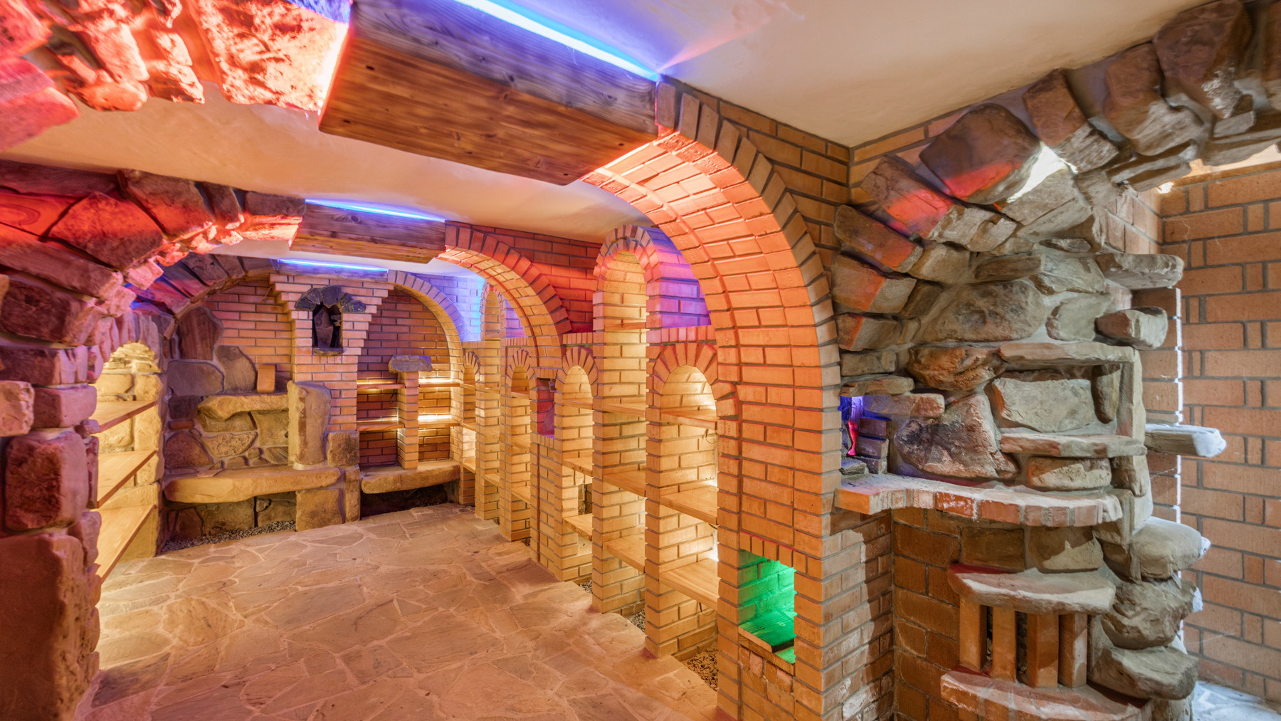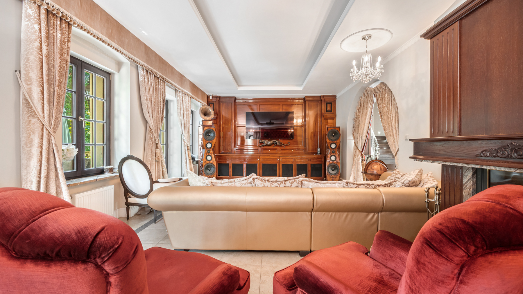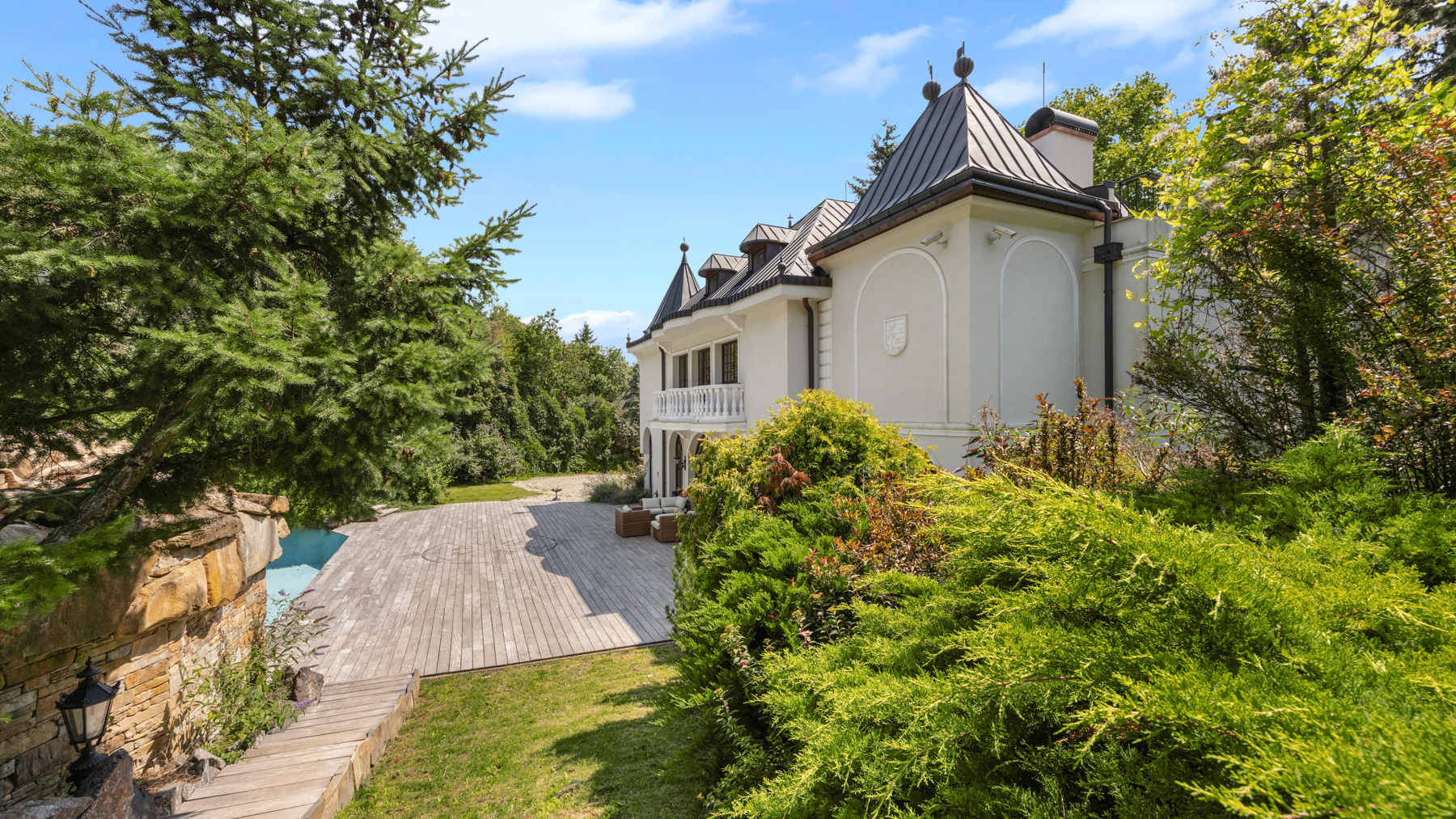 The dominant feature of the offer is the mansion, approved after a complete renovation in 2018. On three floors, it offers a usable area of 550 m² and 12 rooms, of which 7 bedrooms, each with its own bathroom and impressive vaults. The representative entrance hall leads to the dining room with access to the terrace, a fully equipped kitchen with built-in appliances. Siemens and a living room. There is also a study with a library, a fitness studio in a glass alcove, facilities for staff, numerous wardrobes and a so-called secret room. The layout is complemented by a private relaxation area in the attic, a roof terrace and a wine cellar.