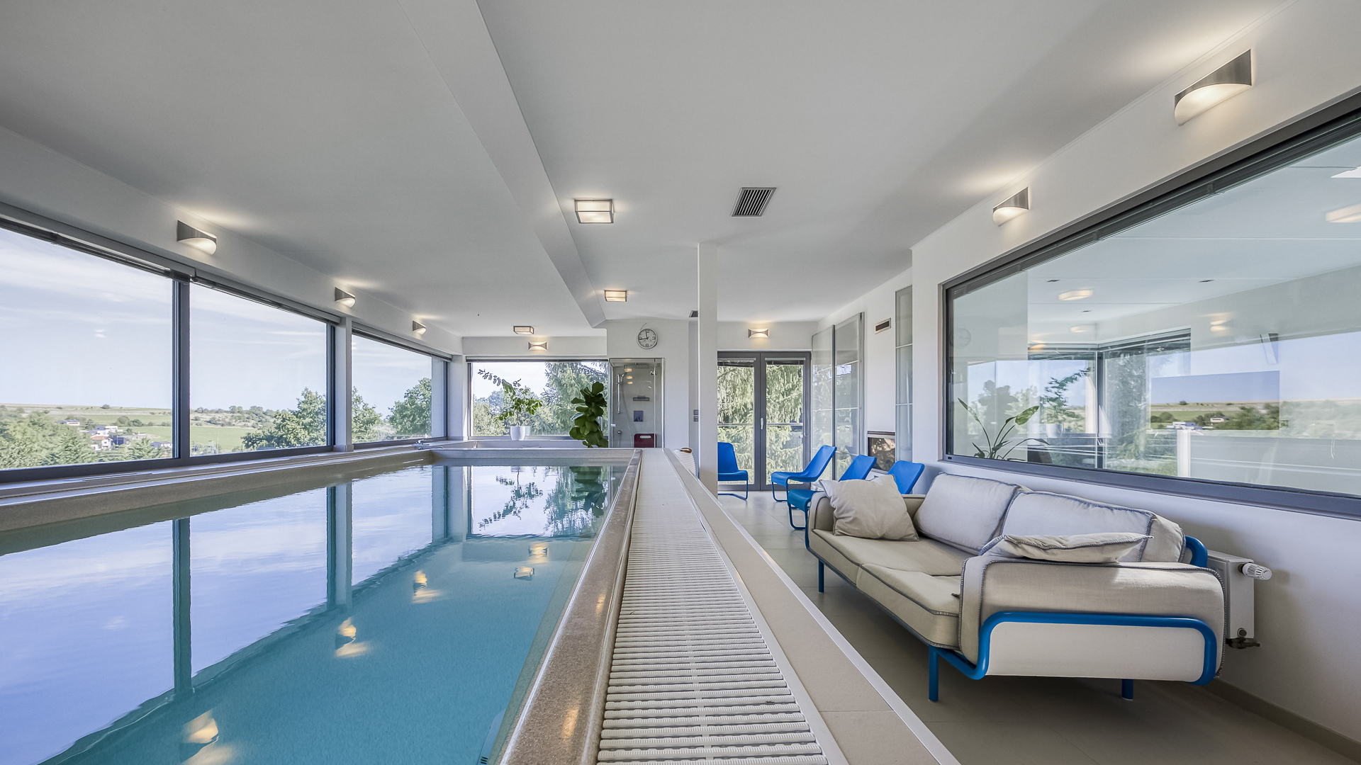 - Stylish indoor pool with counter-current and panoramic views
